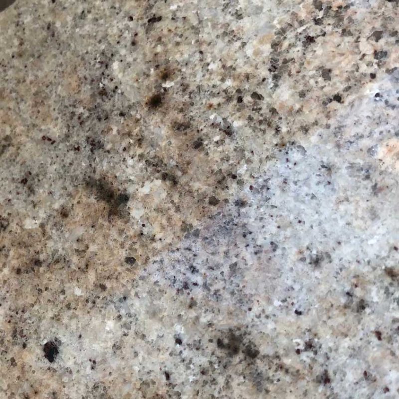All Granite contains holes which, when the surface is polished, shows as pitting. Get close and look at a light’s reflection on the surface. If you make bread or bake on the surface, flour gets into these holes and the surface will require a light scrub to get it clean. The fewer pits there are, the higher quality the granite. Check your granite slab isn’t too pitted.